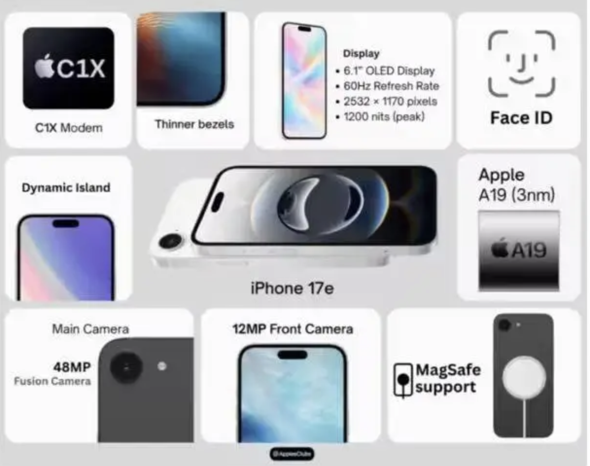 配置上也有重要补充:除了可能搭载下一代 C1 基带,iPhone 17e 还有望加入 U1/U2 超宽带芯片,实现如 AirTag 般的 “精确查找” 功能,进一步补齐生态体验。